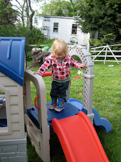 Lizzie has a lot of fun going down and up the slides at the playground. She is very brave.
